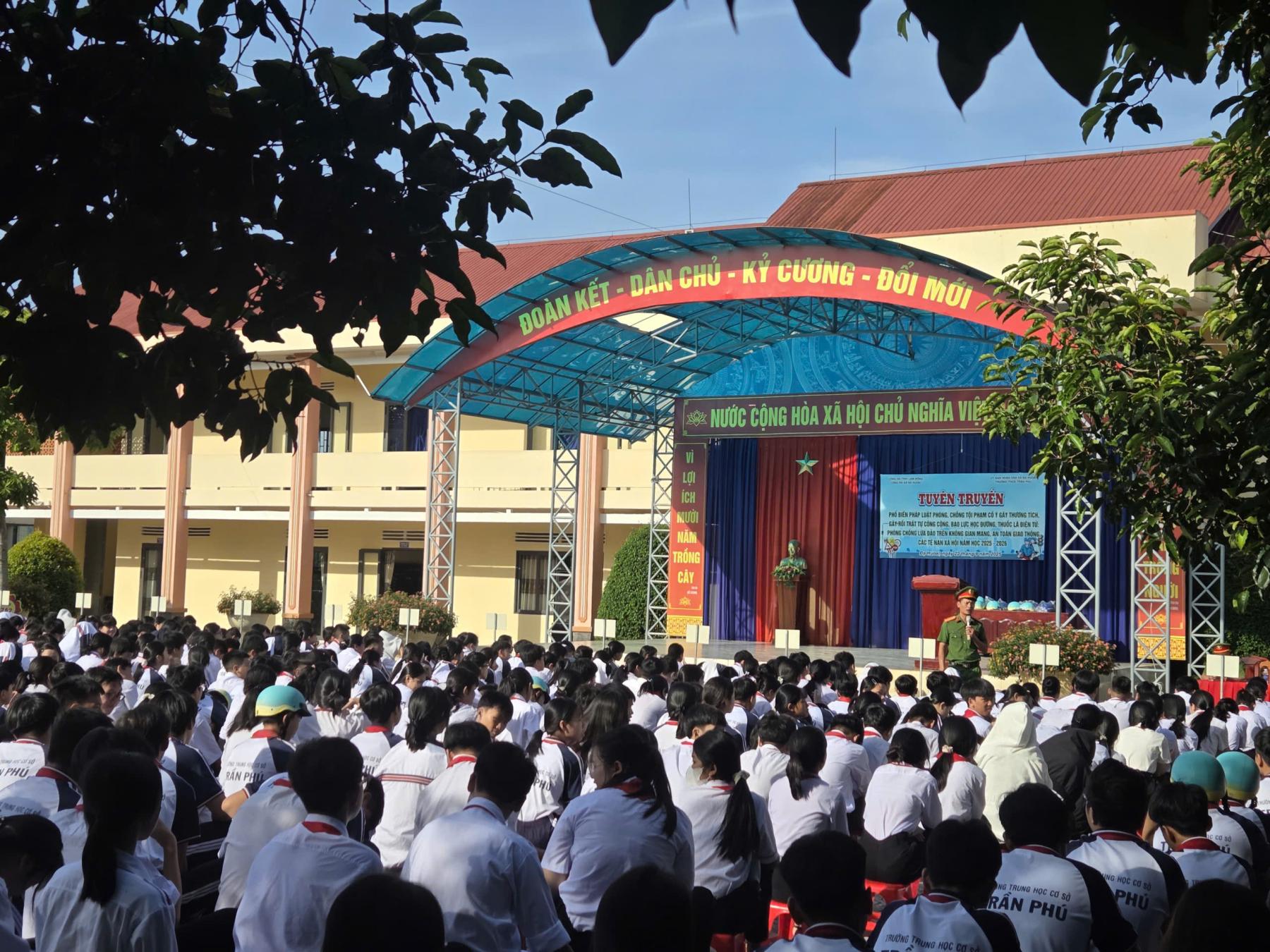 TUYÊN TRUYỀN PHỔ BIẾN PHÁP LUẬT VỀ ANTT, ATGT VÀ PHÒNG CHỐNG MA TÚY... - TRAO TẶNG MŨ BẢO HIỂM CHO CB-GV-NV VÀ HỌC SINH TRƯỜNG THCS TRẦN PHÚ]
